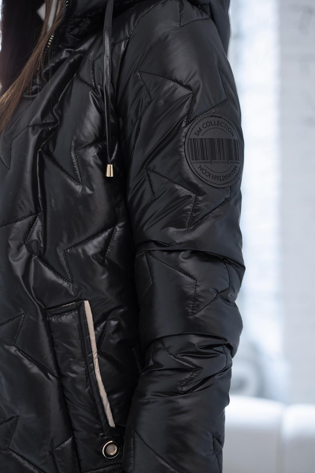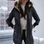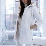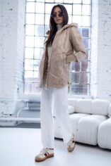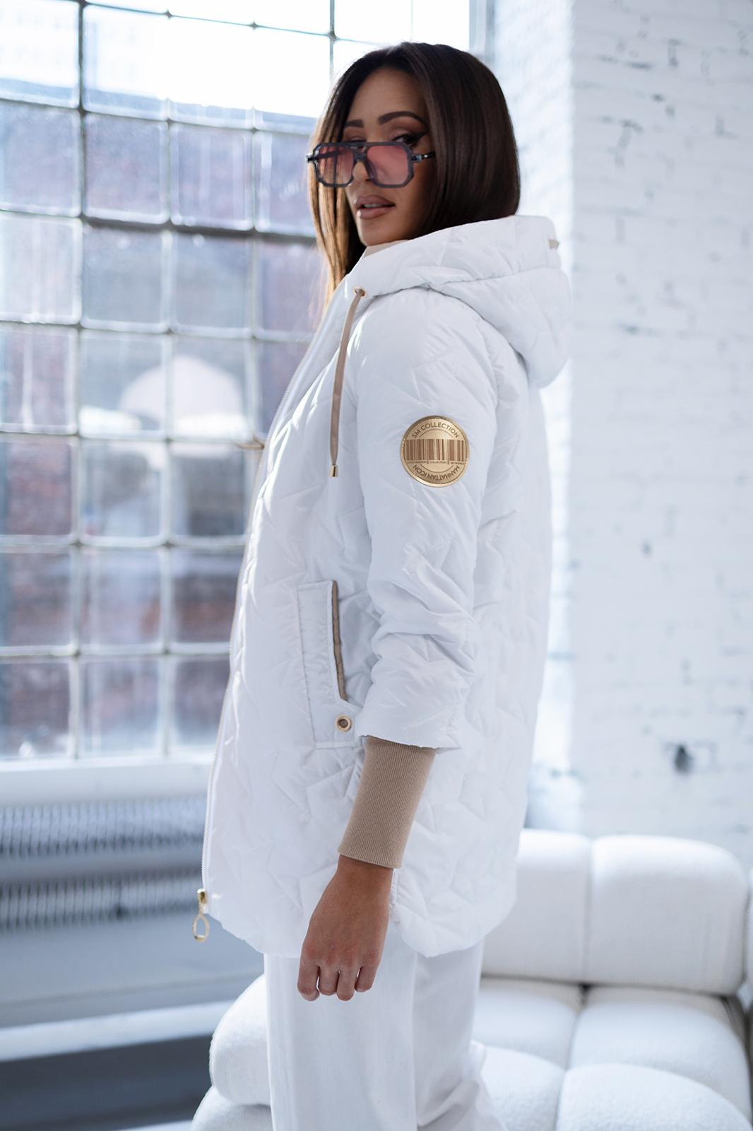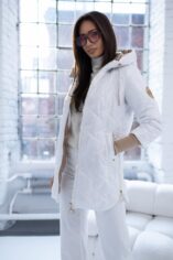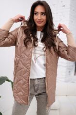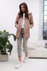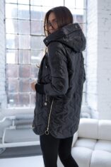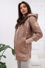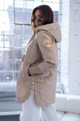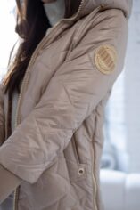 Pikowany wzór oraz złote dodatki, nadaje kurtce nowoczesnego charakteru. Obszerny, regulowany kaptur zapewnia dodatkową ochronę przed wiatrem i deszczem, a także można go regulować za pomocą troczków. Boczne zamki po obu stronach pozwalają na regulację szerokości dolnej części kurtki. Po bokach głębokie praktyczne kieszenie z ozdobami w kontrastowym kolorze. Rękawy zakończone długimi mankietami z miękkiego ściągacza.